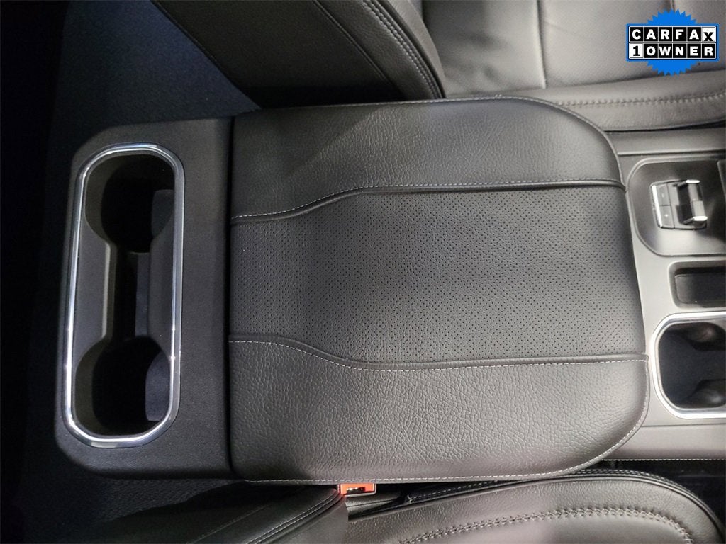 Inside, the cabin is loaded with premium features including Jet Black Forge Perforated Leather seating, 12-way power front seats with memory, heated and ventilated front seats, heated rear seats, heated steering wheel, genuine wood interior accents, and a power sunroof. Technology highlights include a 15 diagonal multicolor Head-Up Display, Super Cruise hands-free driving, navigation, HD Surround Vision, rear camera mirror, and the Premium Bose 7-speaker sound system.
