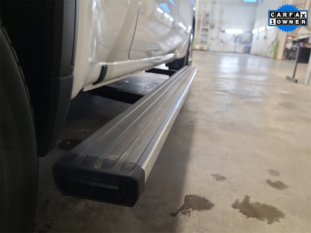 Finished in White Frost Tricoat, this Denali stands out with its signature chrome Denali grille, chrome recovery hooks, chrome wheel-to-wheel assist steps, and GMC MultiPro Power Steps. The Denali Premium Suspension with Adaptive Ride Control and Dual Active Exhaust provide a smooth, controlled ride whether cruising the highway or towing with confidence.